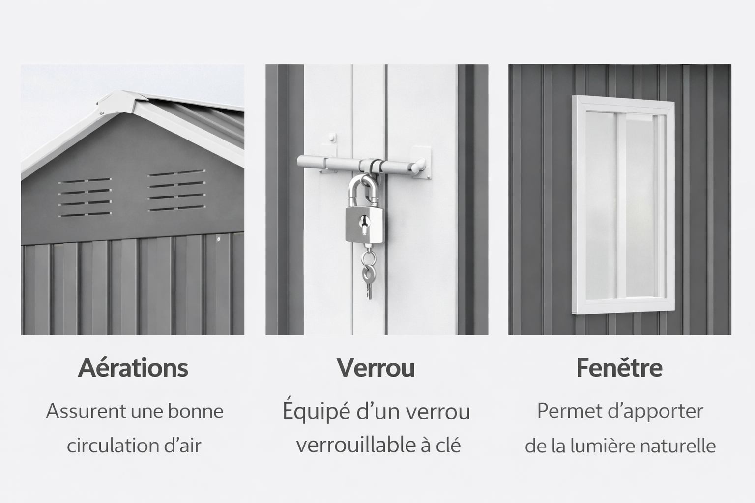 Avec son design moderne gris anthracite et blanc, il s’intègre facilement dans un jardin, sur une terrasse ou dans une cour.